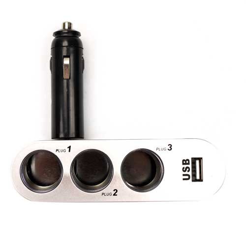 1 x 1 to 3 Car Cigarette Lighter Power Spliter With USB Port